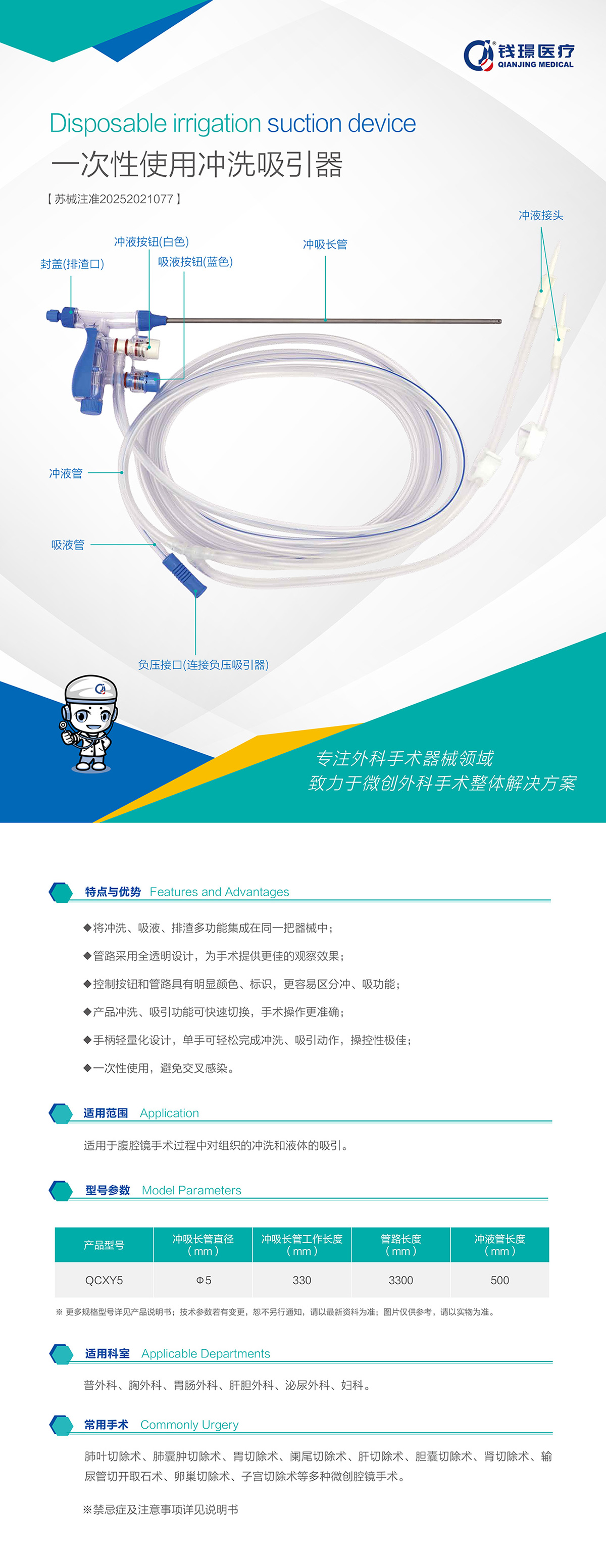 適用于腹腔鏡手術(shù)過程中對(duì)組織的沖洗和液體的吸引。